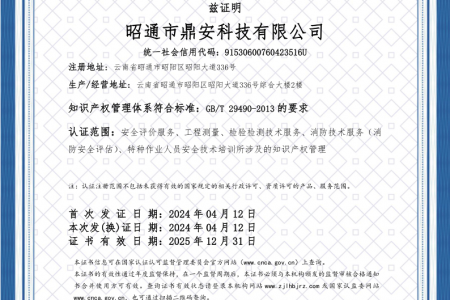 2003年11月10日,昭通市鼎安科技有限公司成立,初始主要從事第三方安全工程技術(shù)服務(wù),經(jīng)多年運(yùn)營,發(fā)展為多專業(yè)綜合科技平臺,為社會(huì)提供多種專業(yè)技術(shù)服務(wù)工作。 現(xiàn)公司注冊資金為1200萬元,公司法定代表人:毛衛(wèi)旭。公司主要業(yè)務(wù):安全評價(jià)、安全標(biāo)準(zhǔn)化評審、安全工程技術(shù)服務(wù);環(huán)境監(jiān)測、職業(yè)衛(wèi)生檢測、檢驗(yàn);法律訴訟及非訴訟服務(wù);司法鑒定、固定資產(chǎn)投資項(xiàng)目節(jié)能服務(wù);工程咨詢;工程測量測繪;安全教育培訓(xùn)等。是安全生產(chǎn)服務(wù)、安全教育培訓(xùn)機(jī)構(gòu),也是環(huán)境監(jiān)測和職業(yè)衛(wèi)生服務(wù)機(jī)構(gòu),同時(shí)也是綜合的檢測檢驗(yàn)、綜合科技平臺服務(wù)機(jī)構(gòu)。多年來為公、檢、法、司、軍、警、海關(guān)、仲裁、安監(jiān)、工礦商貿(mào)企業(yè)、社會(huì)團(tuán)體及個(gè)人提供多專業(yè)技術(shù)服務(wù)。